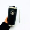 This sleek, durable tumbler comes with a metal straw and a convenient cleaning brush, making it perfect for both hot and cold drinks.